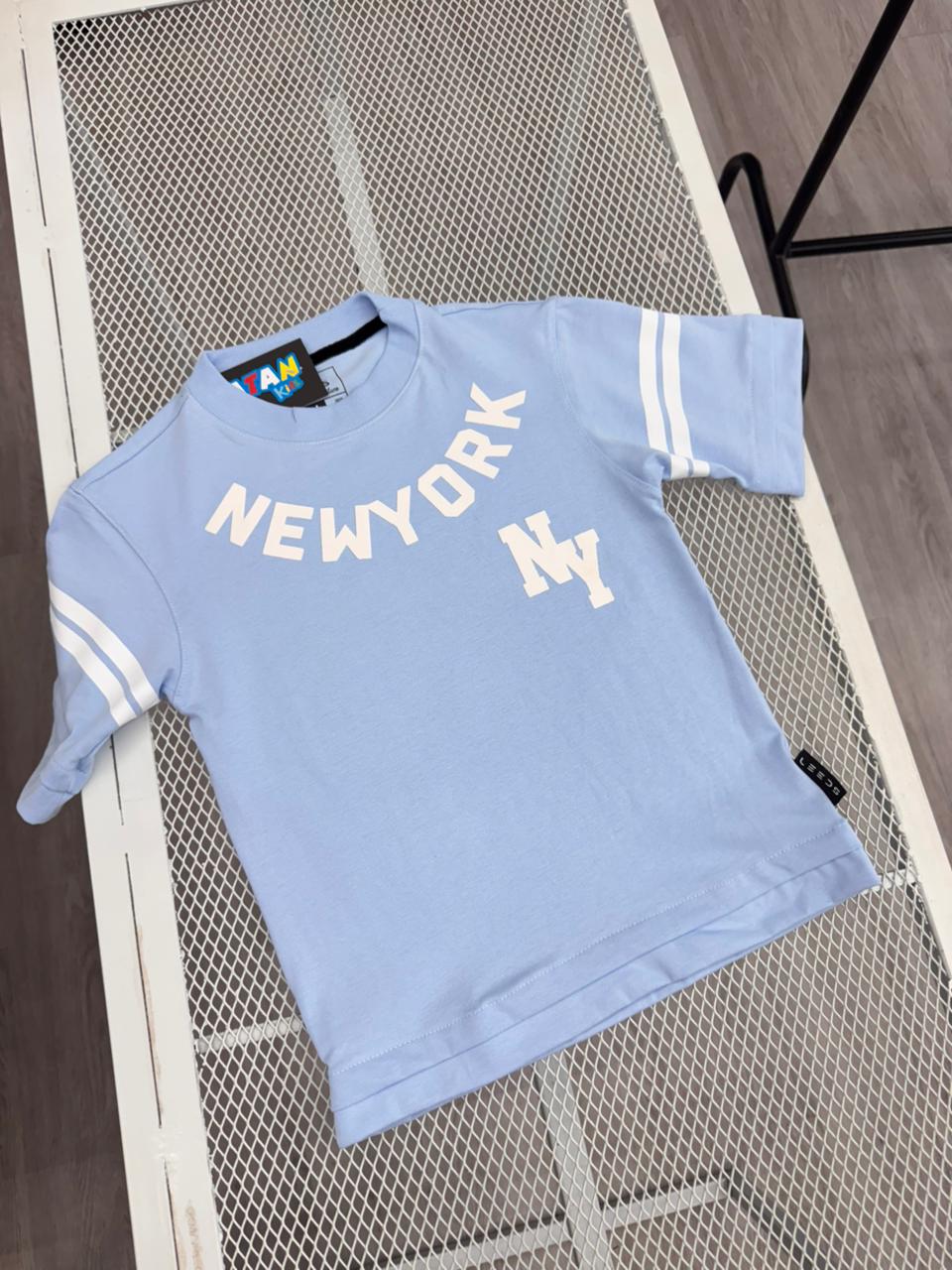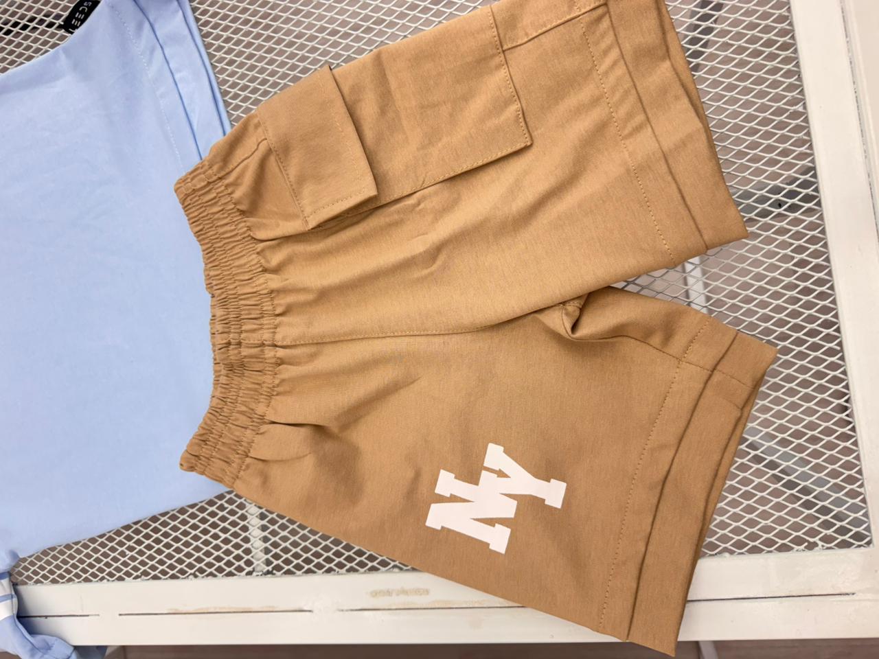 Diseño moderno estilo oversize, con camiseta celeste estampada y short café con bolsillos laterales funcionales.