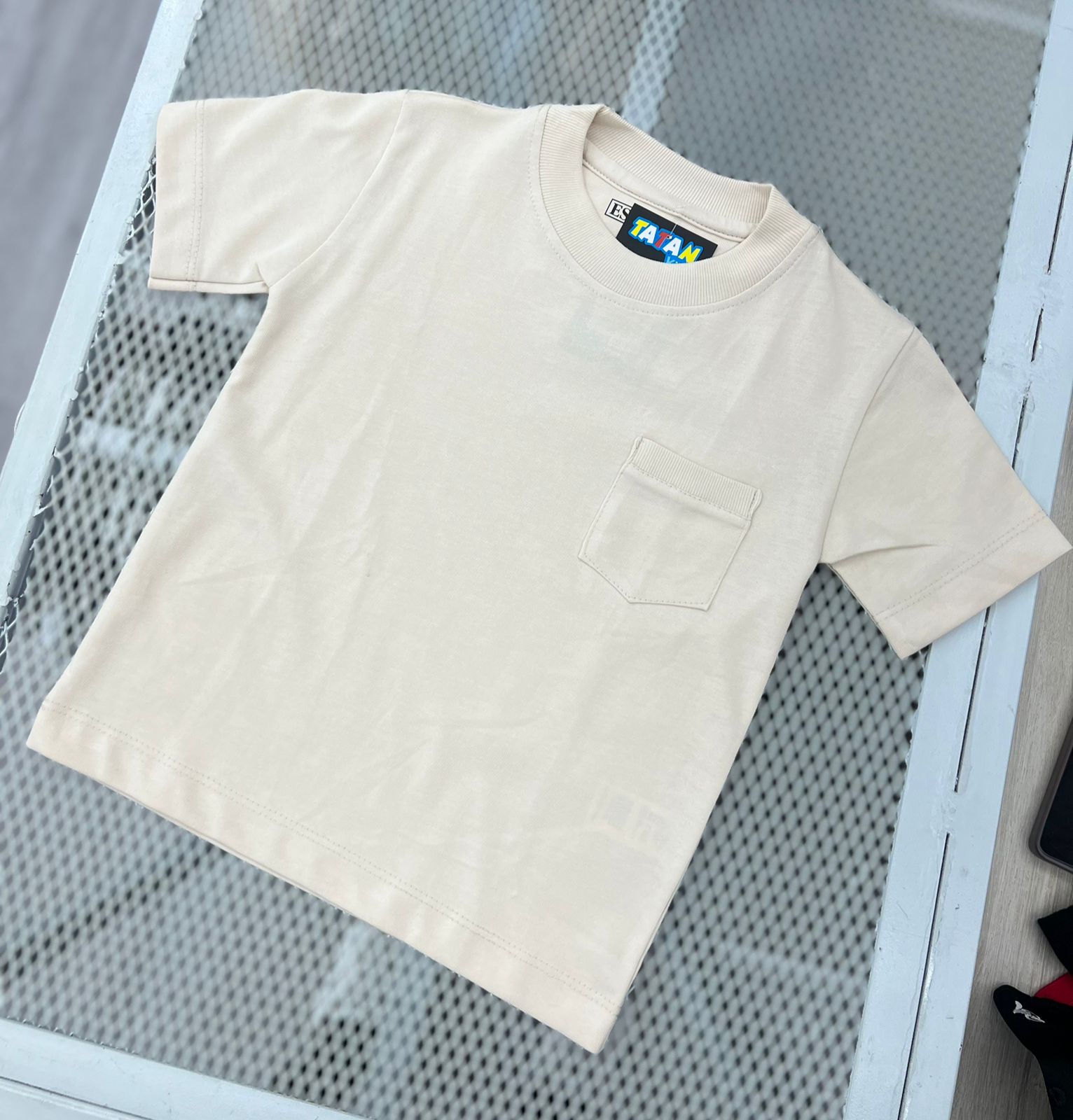 Camiseta Unicolor Con Bolsillo Beige